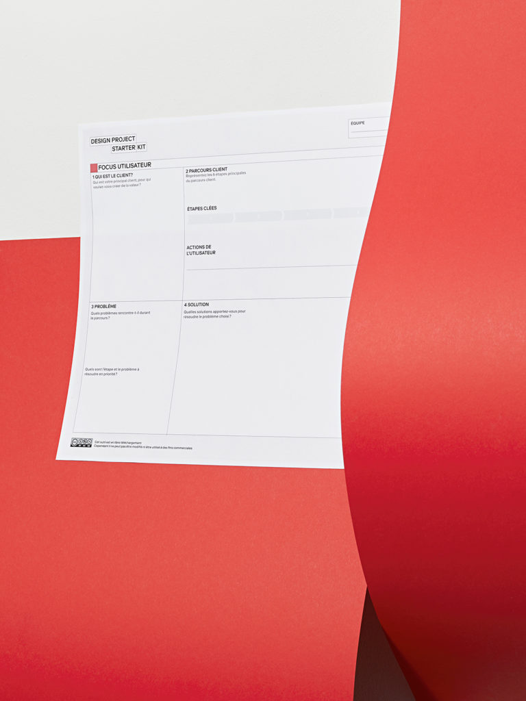 L’outil focus utilisateur a été conçu pour visualiser l’expérience du client principal et identifier les interactions avec le produit ou le service. Cet outil vous demande de représenter en 6 étapes le parcours du client et de valider le problème à résoudre en priorité. Il est important pour acquérir une vision globale et zoomer sur les éléments essentiels de votre produit ou service.